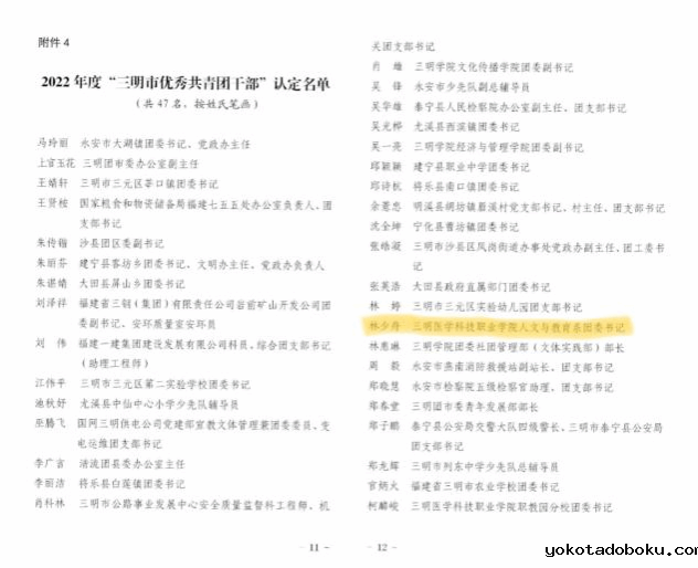 人文与教育系团委书记林少舟同志获评2022年度“三明市优秀共青团干部”荣誉称号。
