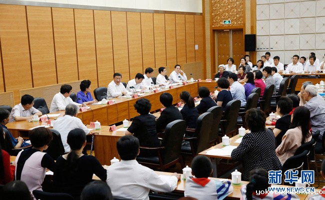 随后,习近平同教师学生代表座谈。八一学校校长沈军、八一学校教师张亚红、首都经贸大学教授纪韶、八一学校学生牟迪铃和方亦昕先后发言,他们谈教育管理、谈教书育人、谈理想追求、谈学习生活,习近平不时插话交流,现场气氛活跃。